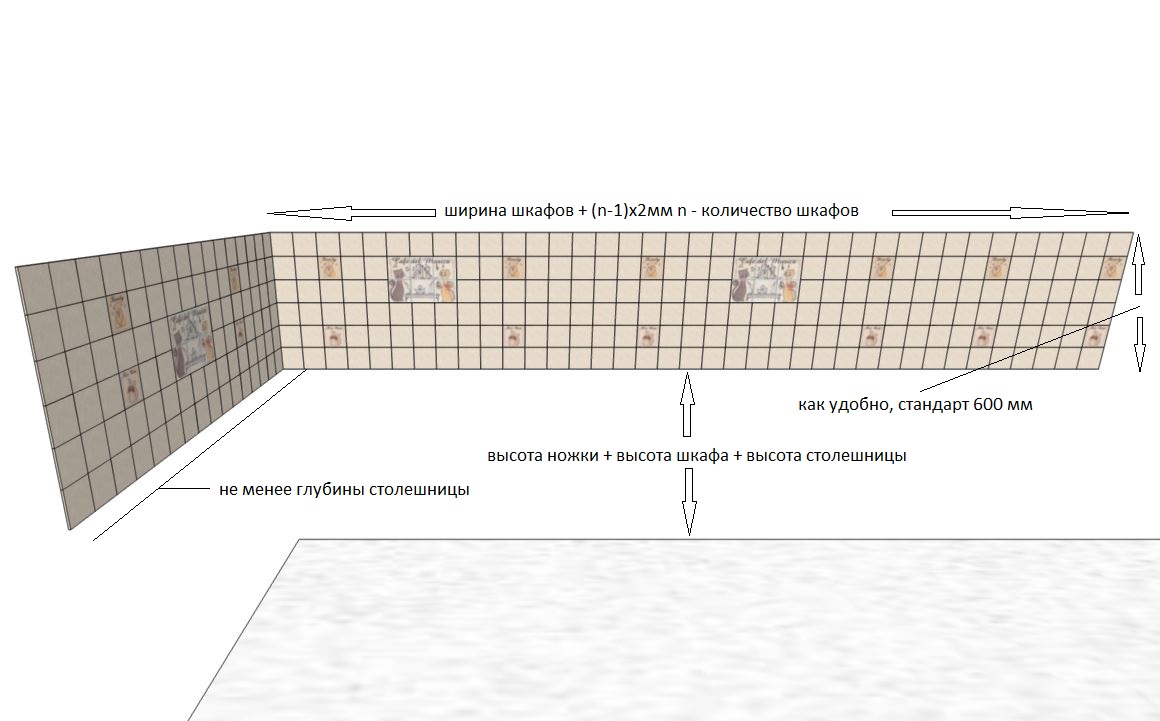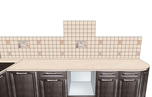 После того, как вы выбрали материал и фактуру фартука (надеюсь на правильный выбор в пользу гладкой керамической плитки, мозаики) приступаем к его монтажу. В этом мероприятии есть особенности о которых должен иметь представление не только мастер, но и заказчик-потребитель. В связи с этим, и я напишу пару строк по теме. 1. Фартук является элементом кухонного гарнитура. В идеале его нужно устанавливать одновременно с гарнитуром после накрытия нижних шкафов столешницей, а часть фартука под шкафом с вытяжкой следует монтировать после установки верхних шкафов.