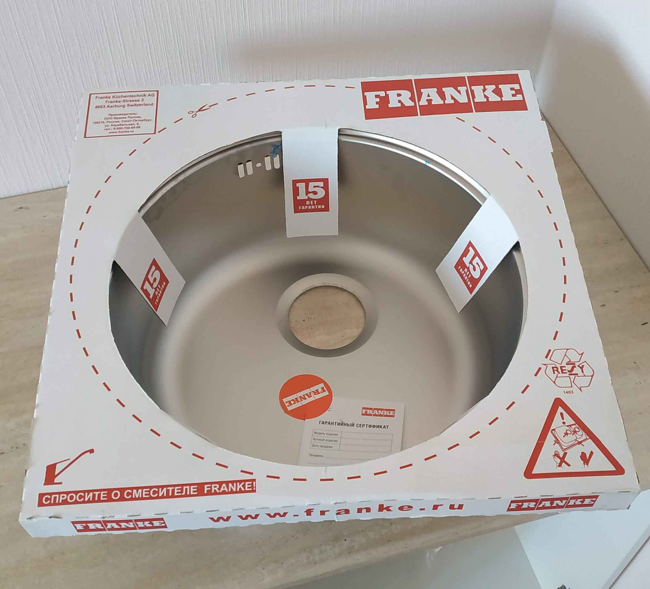 переупаковывают и продают за 2000 рублей в красивой упаковке с надписью "гарантия 25 лет". На фото мойка с названием FRANKE RON 610-38 (автором статьи устанавливалась более 50 раз). Основными характеристиками данной модели являются: тонкий металл неизвестного сплава, кривая посадочная поверхность, отсутствие борта для уплотнителя, дерьмовая фурнитура в комплекте. Установка такой мойки просто испортит вам столешницу. Достоинства - можно купить за 1500-2000, недостатки - можно выкинуть через месяц со столешницей, купленной за 6000-8000.