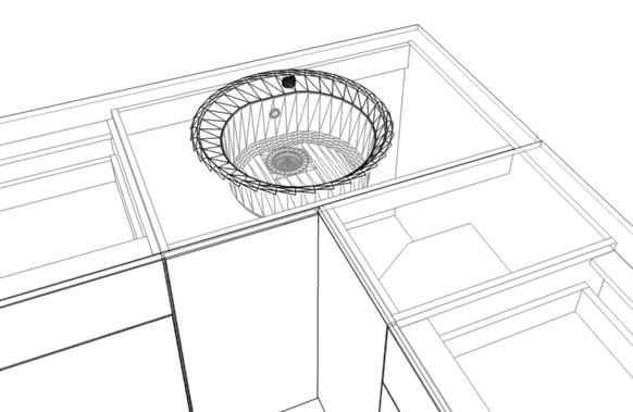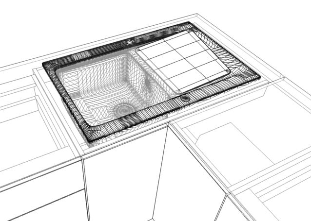 Фаянсовые, фарфоровые и керамогранитные кухонные мойки смотрятся шикарно и имеют всегда очень достойное качество. Самый распространенный в эксплуатации - керамогранит (гибрид керамики и композита). Недостатком является высокая цена, очень сложная установка, большой вес в сочетании с хрупкостью материала. 3. Способ установки мойки. По способу установки кухонные мойки могут быть накладными, врезными и интегрированными. Начнем с конца. Интегрированные мойки изготавливаются на заводе вместе со столешницей и составляют единое целое. Очень шикарное решение и очень дорогое. Врезные мойки - это наш вариант. Врезные мойки устанавливаются в выпиленное в столешнице посадочное место. Это практично, удобно и недорого. При правильной установке врезная мойка служит дольше столешницы и устанавливается в новую. Накладные мойки устанавливаются на отдельно стоящий шкаф. Применение накладной мойки в кухонном гарнитуре также неправильно, как применение отдельно стоящей плиты, разрывающей столешницу нижних шкафов гарнитура. 4. Размер и форма кухонного гарнитура. Хочется отметить несколько практических правил: - тумба под мойку не должна быть большой, достаточно, чтобы в ней помещалась чаша мойки и подводка к смесителю; - крыло мойки направляют от стены (угла) в сторону продолжения столешницы; - мойку над угловым шкафом большого размера стараются разместить таким образом, чтобы слив с сифоном не располагались непосредственно за дверью шкафа.