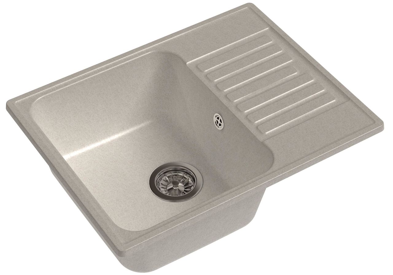 Очень практичная и красивая мойка любых размеров, форм и цветов подбираемых под столешницу. Мойка изготавливается путем смешивания песка, гранитной или мраморной крошки, полимерной или акриловой смолы и цветовых пигментов. Как правило в комплекте имеется смеситель облицованный аналогичной смесью. Достоинствами мойки из композитных материалов можно считать: внешний вид в цвет под столешницу, фартук или фасады кухни, отсутствие шума, не выгорает на солнце, ударопрочная, износоустойчивая, долговечная. Недостаток - она дороже мойки FRANKE RON 610-38 компании "Eurodomo". Если серьезно, недостатком бывает брак шлифовки посадочной поверхности.