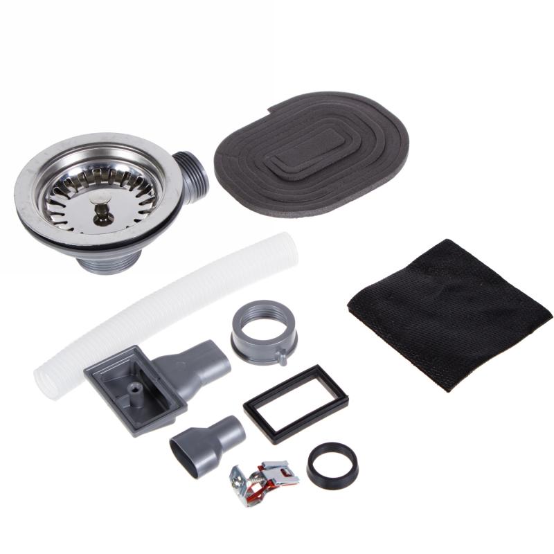5. Комплектность и фурнитура Арматура слива и перелив всегда продаются в комплекте с мойкой. В том же комплекте для металлических моек должны находится уплотнитель и крепления. Обязательно нужно обратить внимание на то, чтобы арматура слива (ее наружная часть), винт крепления арматуры и крепления мойки к столешнице были металлическими.