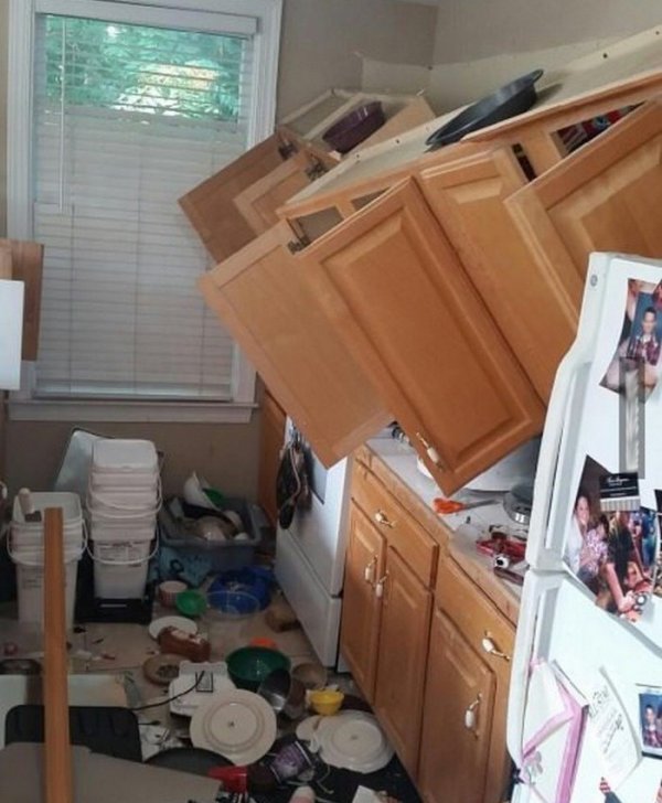 Гипсокартон - удобный в работе, недорогой материал для быстрого выравнивания стен и монтажа перегородок (Википедия). Так для кого нужен гипсокартон? Правильно, для строителей-отделочников, желающих быстро и без особых затрат "сделать красиво". А вам то зачем вместо стены перегородка, которую случайно можно пальцем проткнуть? Вам на кухне сделали ремонт с обшивкой стен гипсокартоном и при этом не предусмотрели монтаж закладного бруса? Вы довольны, очень красивые и ровные стены с колоннами и арками, многоуровневый потолок с новыми светильниками. И я вас поздравляю с ремонтом! А куда мы с вами будем верхние шкафы гарнитура монтировать? На капитальную стену, которая под картонкой осталась. А до капитальной стены будем добираться путем избавления от прикрывающего ее гипсокартона. Навеска шкафов на гипсокартон недопустима. Любая организация выполняющая работы по монтажу шкафов с гарантией откажется от монтажа на гипсокартон. Такие "работы" можно выполнить только самостоятельно или можно обратиться к тем, кто прицепил вам эту дрянь на стену, гарантировав надежность и прочность конструкции. Конечно, если это не перегородка а обшивка, можно с помощью анкерных болтов монтировать на гипсокартоне плоскость крепления, опирающуюся на капитальную стену. Но это будет капитальный ремонт стены на дешевом косметическом с уменьшением объема помещения. Так зачем же делался дешевый косметический ремонт? Фото из Яндекс картинки: