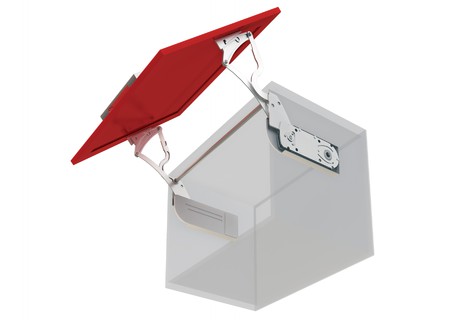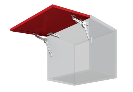 Откидная система AERO Откидная система AERO открывает фасад вверх и под углом над шкафом одновременно. Такое движение обеспечивает мебели завершенный вид, улучшает внешний вид шкафа в целом. AERO позволяет фасаду шкафа фиксироваться четко в любой точке траектории хода. Оснащен амортизатором для мягкого закрывания.