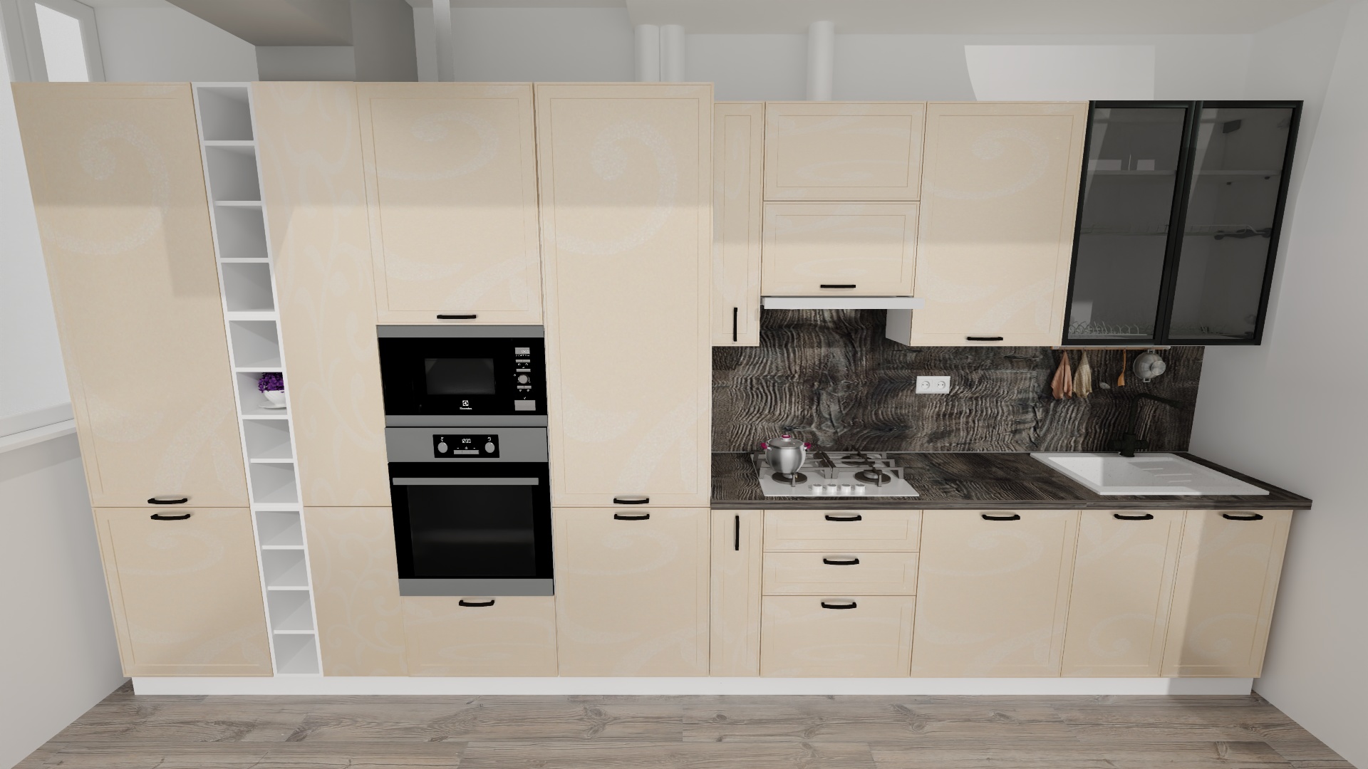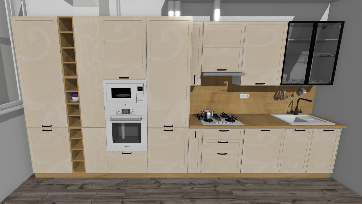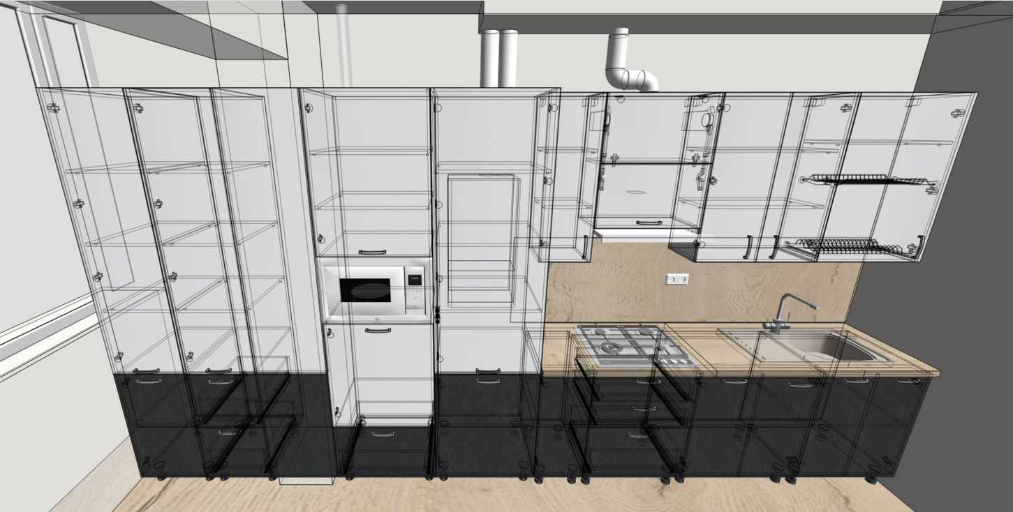 Без проекта высок риск ошибок: розетки окажутся за шкафами, над мойкой и варочной поверхностью, а трубы — на пути открывания дверей.