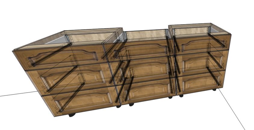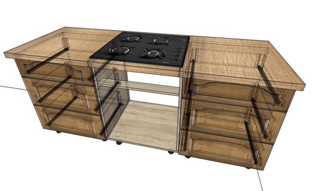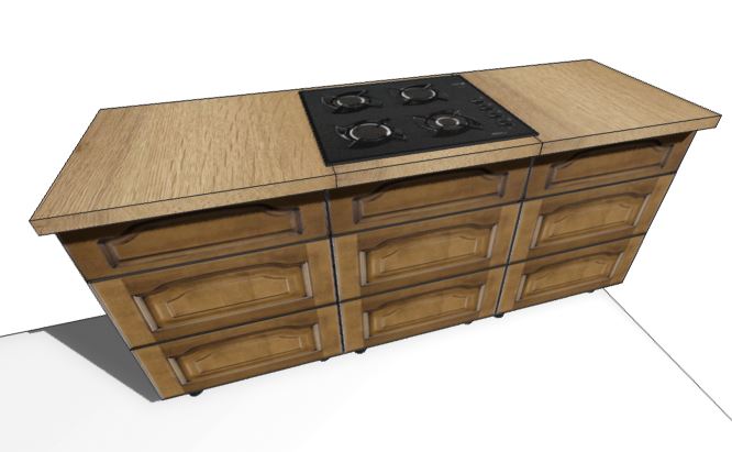При монтаже варочной поверхности одним из вариантов установки является монтаж над столом с выдвижными ящиками. Удобство такого расположения заключается в том, что все коммуникации скрыты, но имеется легкий к ним доступ. Для начала изменяем конструкцию стола с выдвижными ящиками: