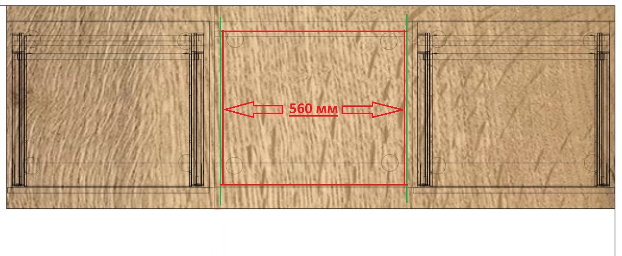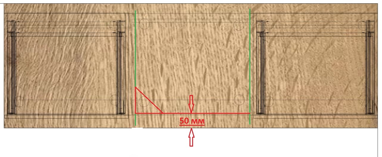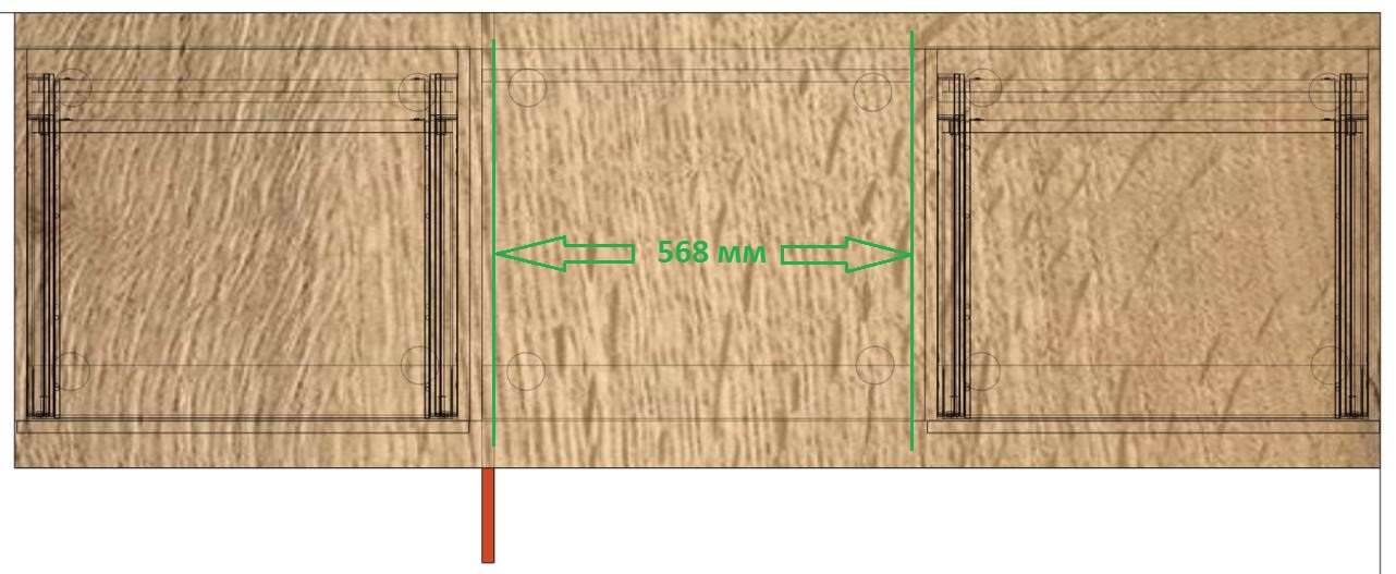 Устанавливаем столешницу и готовимся к разметке места пропила столешницы под варочную поверхность: для разметки используем нивелир или линейку в виде свободной узкой планки корпуса (на фото). Размечаем на столешнице поперечные линии вдоль стенок стола: Перпендикулярно полученным линиям (паралельно переднему краю столешницы) провидим первую линию реза на расстоянии 50 мм от переднего края столешницы: На расстоянии указанном производителем (обычно 490 мм) проводим вторую линию реза паралельно заднему краю столешницы: Паралельно поперечным линиям разметки (обычно с отступом 4 мм) проводим поперечные линии реза на расстоянии указанном производителем (обычно 560 мм): По размеченным линиям делаем пропил столешницы: